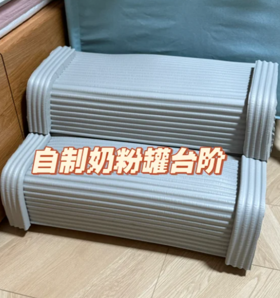 正好家里有宝宝喝完的奶粉罐,用来做爬爬梯刚刚好。