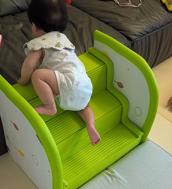 做好了之后,放在沙发旁边啊、床的旁边都很合适,宝宝可以上下爬来爬去。