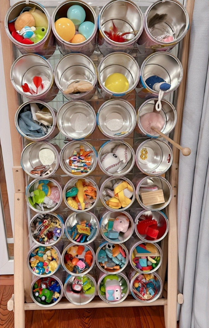 自从用奶罐罐diy了置物架之后,孩子的玩具终于有地方摆放了,再也不用担心孩子玩具随便乱放,家里乱糟糟的了。
