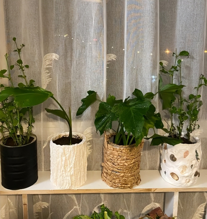 如果不介意奶粉罐颜值,直接在里面栽种植物就可以了,如果介意颜值,可以在奶粉罐外面装饰一下。