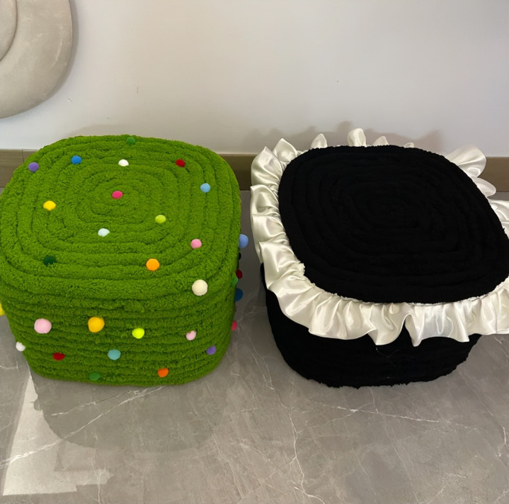 我一共用奶粉罐做了两个小凳子,平时放在家里刚刚好,坐着也很舒服。