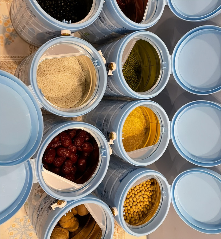 家里的奶粉罐,其实没必要扔掉,可以用来收纳家里的各种谷物。